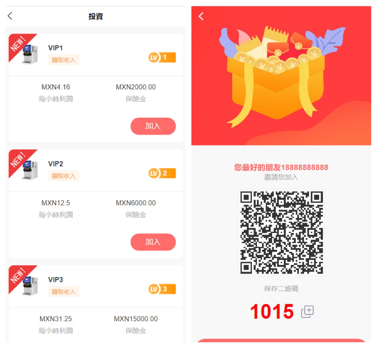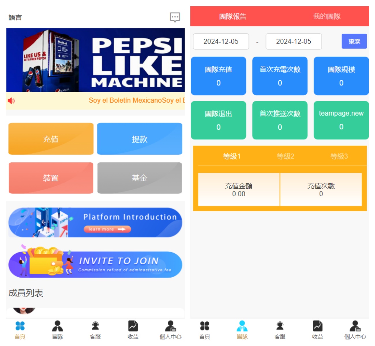 源码前端是3种语言,此套系统功能比较简洁只有个投资,然后一个三级分销推广的