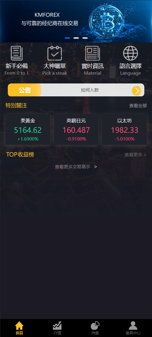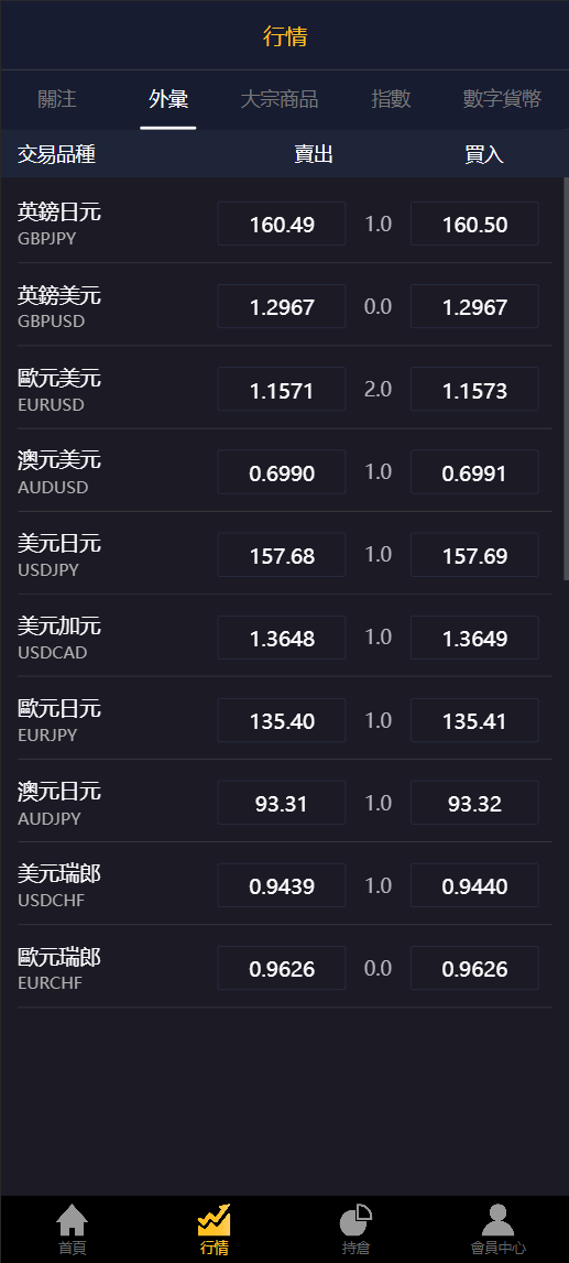 1. 产品:外汇,数字货币,黄金原油,国际股票指数