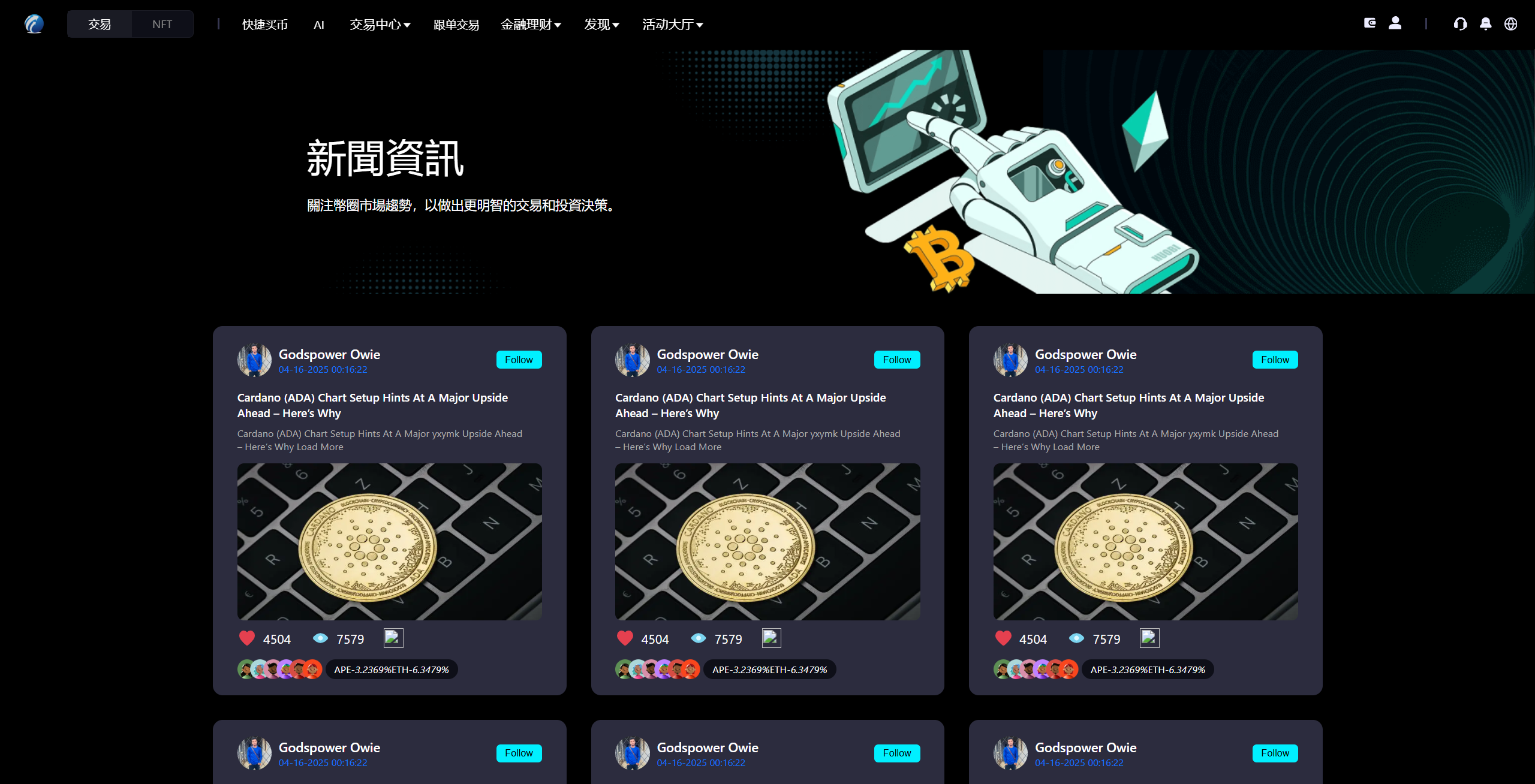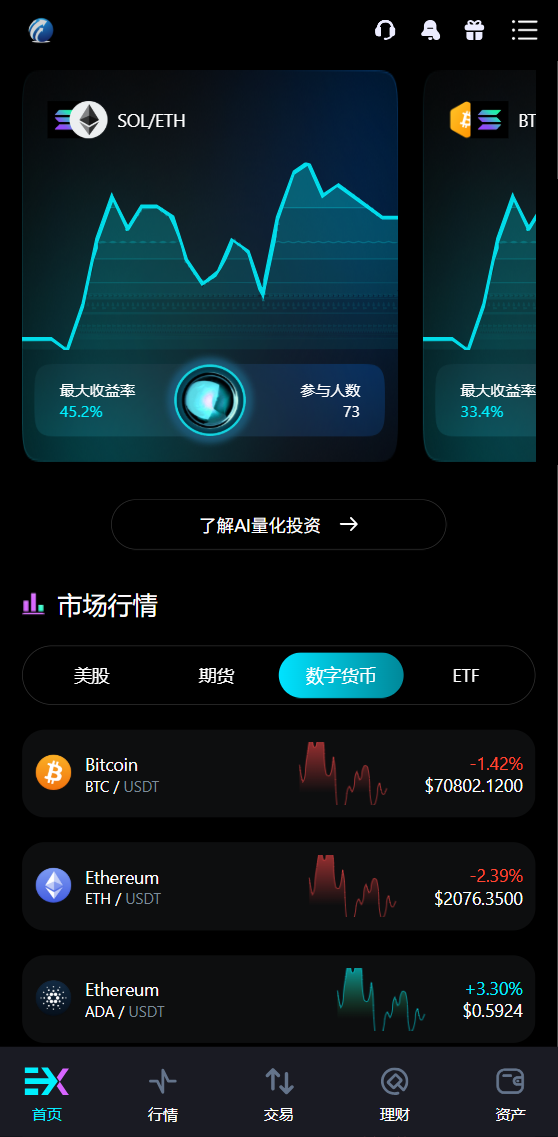 功能介绍:交割合约+期权交易+现货交易+C2C+平台币+Ai量化投资+组合投资+Defi借贷+NFT+跟单+闪兑+三分销系统