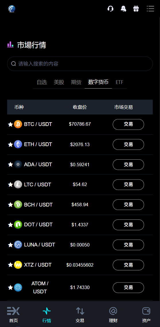 前端接口:外汇+美股+期货+平台币