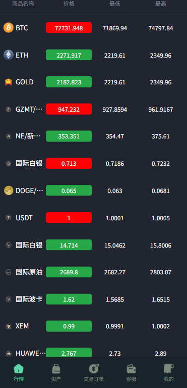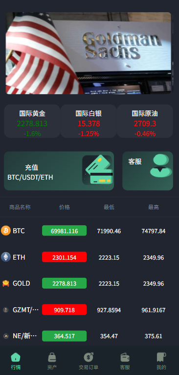 UI纯绿色的美观大方,功能很简洁实用的一套微交易所系统,产品包含国际黄金,白银,原油,数字货币,股票等。带推广分销,后台风控功能完善