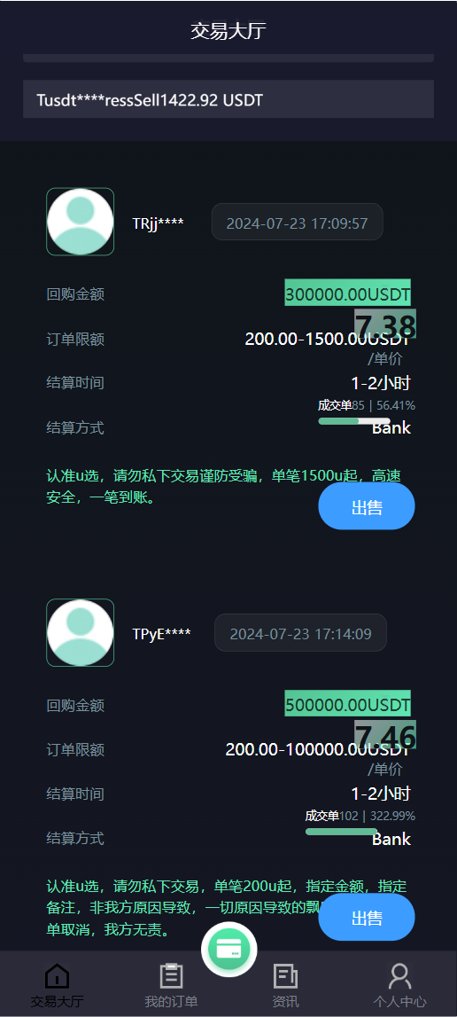 可以在交易大厅发布USDT购买广告,可以用各种货币购买USDT,带团队等级和分销系统,一款c2c交易市场