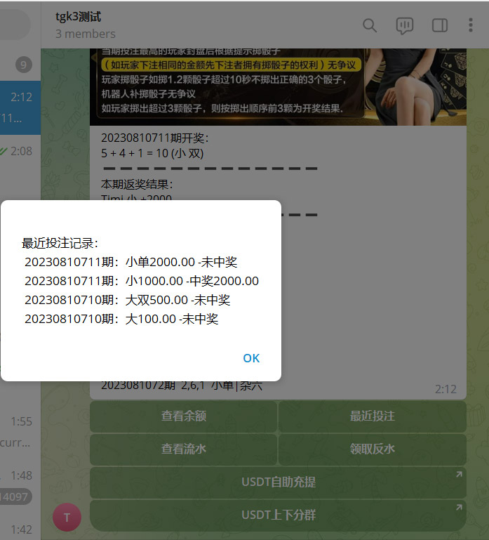 TG电报区块链快三骰子游戏/电报快三机器人/USDT上下分
