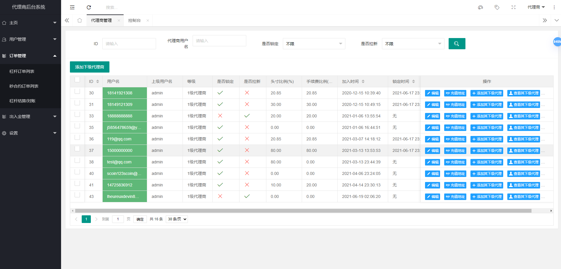 系统新增了三级分销功能,带usdt理财挖矿期权建仓,带跟团购买功能,打针和风控功能。
