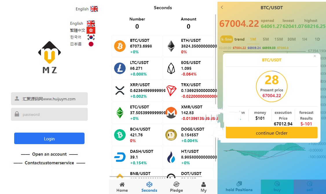 2024四种语言微盘仿交易所源码/K线正常秒合约质押