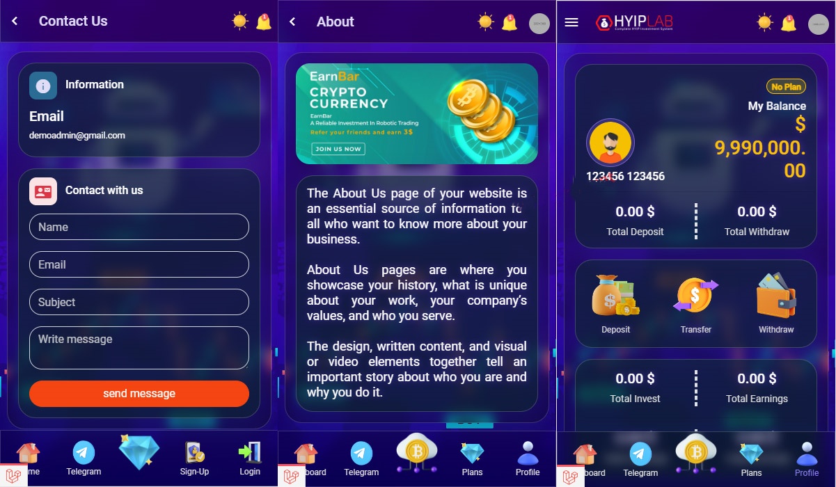 纯英文界面,UI很精美,更符合外国人的审美。海外机器人挖矿理财投资源码,前后台都是英文的,带K线波动。可配合刷单,USDT授权,盗U等模式,完美运行高效吸引客户。