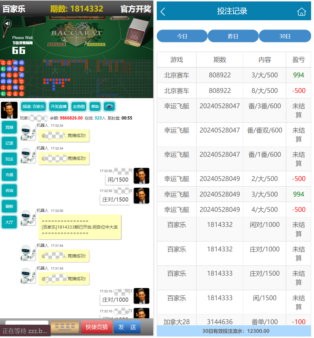 运营级开源菠菜竞猜游戏/番摊玩法/无授权完整数据/带控制/机器人/预设开奖