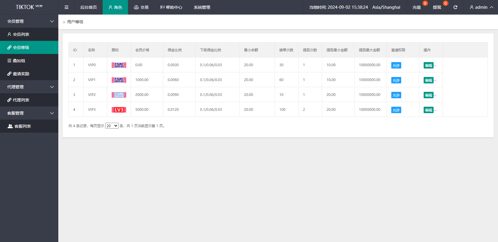 5.三级分销,带客服,等级优先,充值提现优先完美后台查询功能