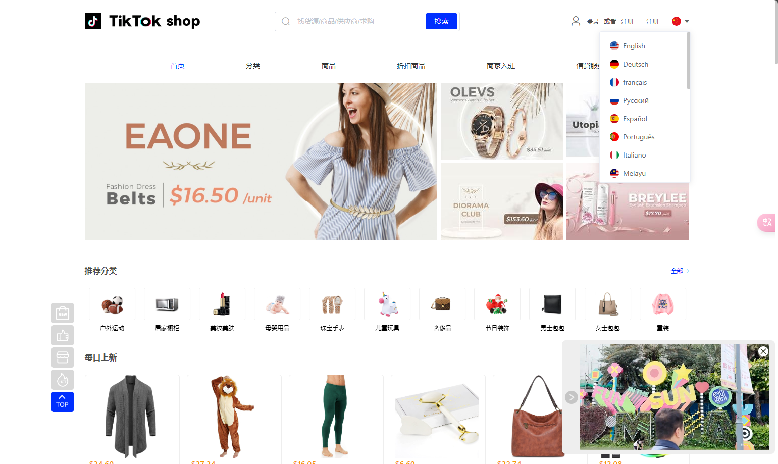 TikTok抖音商城 多国语言