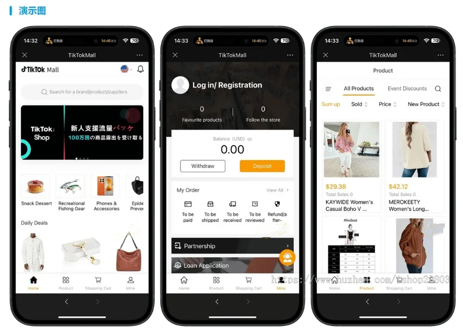 多语言跨境电商TikTok抖音免登陆内嵌商城|商家入驻一键铺货
