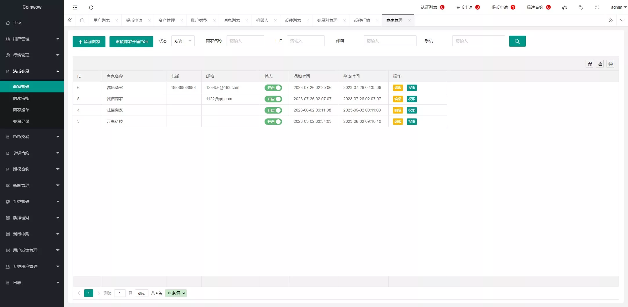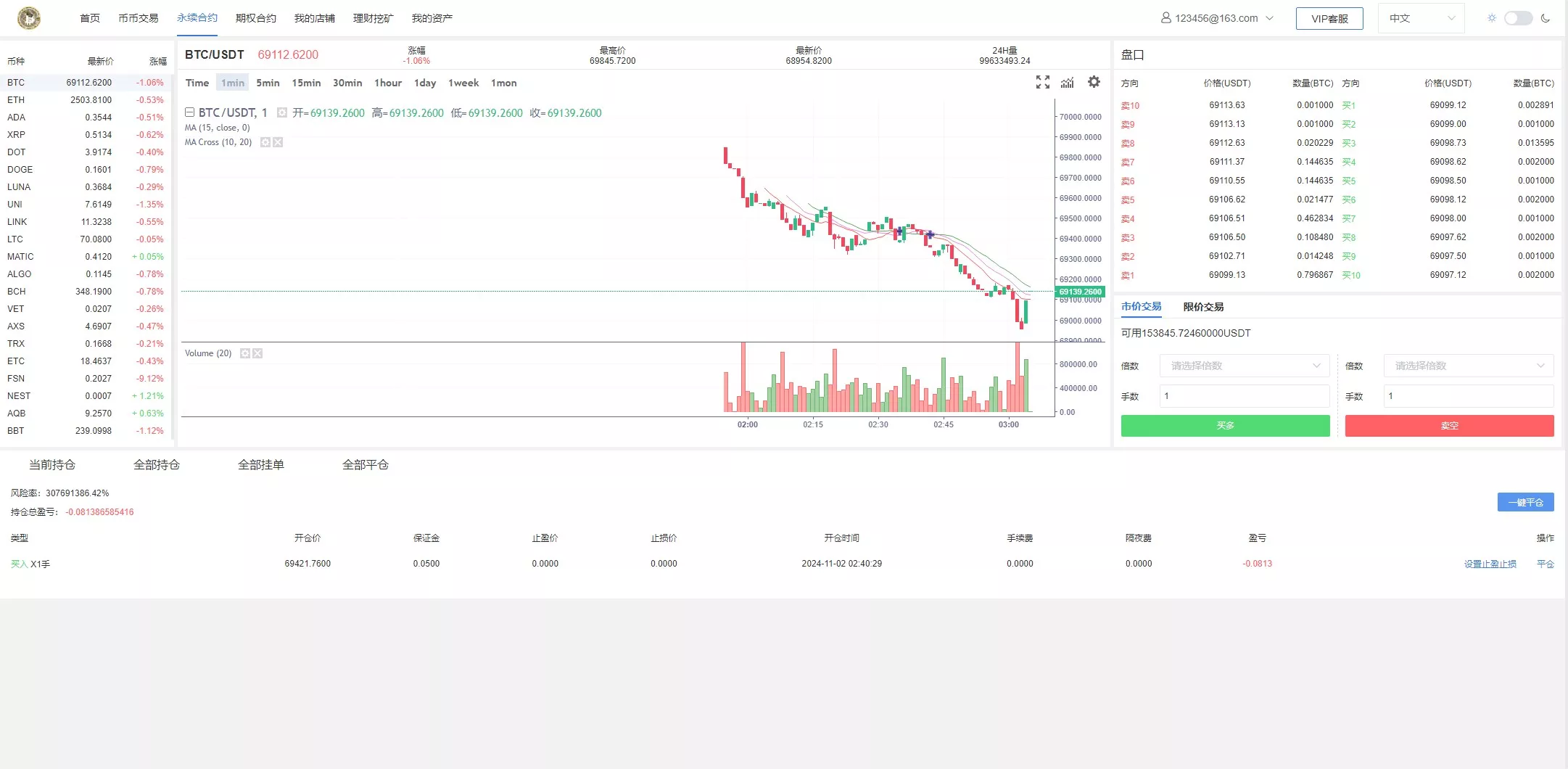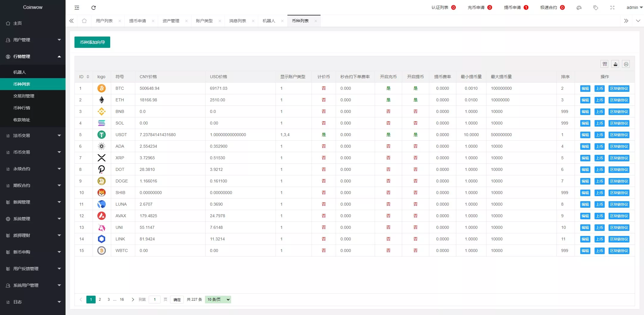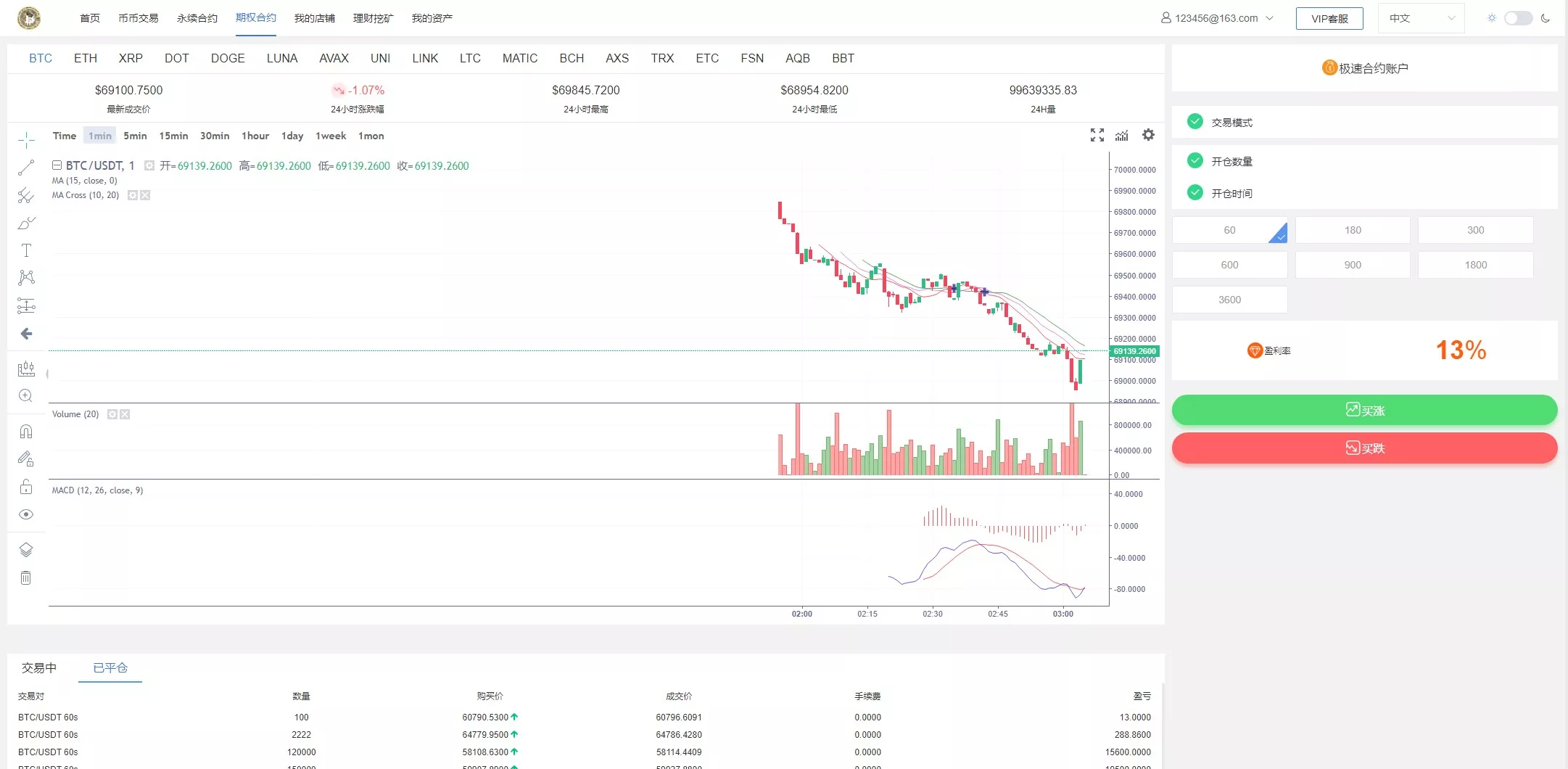 支持产品:虚拟币,期权交易,合约交易,质押挖矿,认购等功能,支持用户单控,期权订单控制