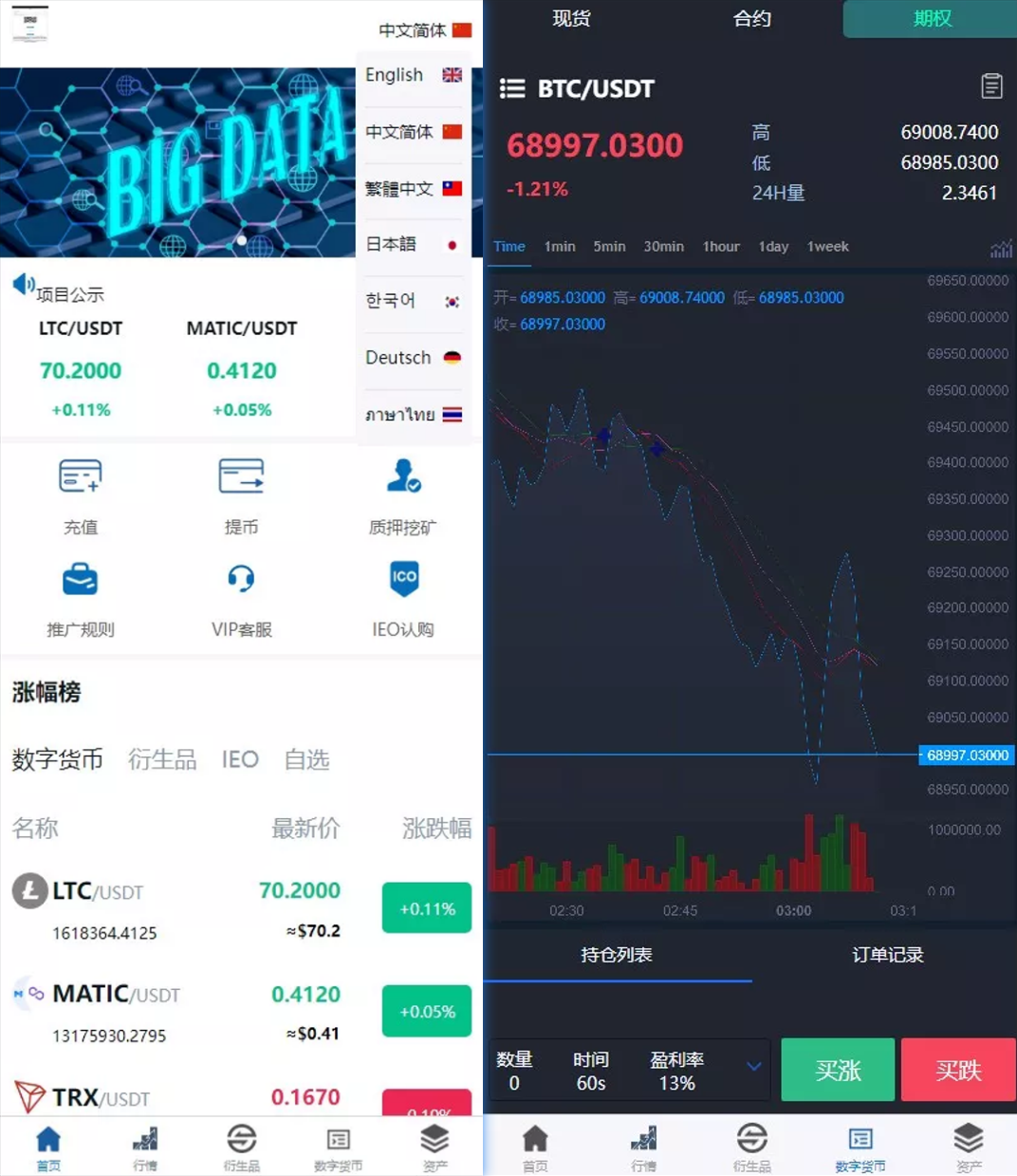 【新版多语言交易所系统】区块链外汇交易+期权合约交易+机器人+币币交易