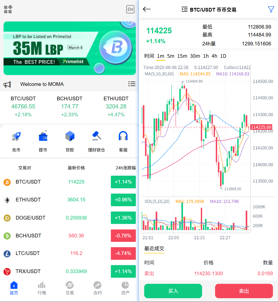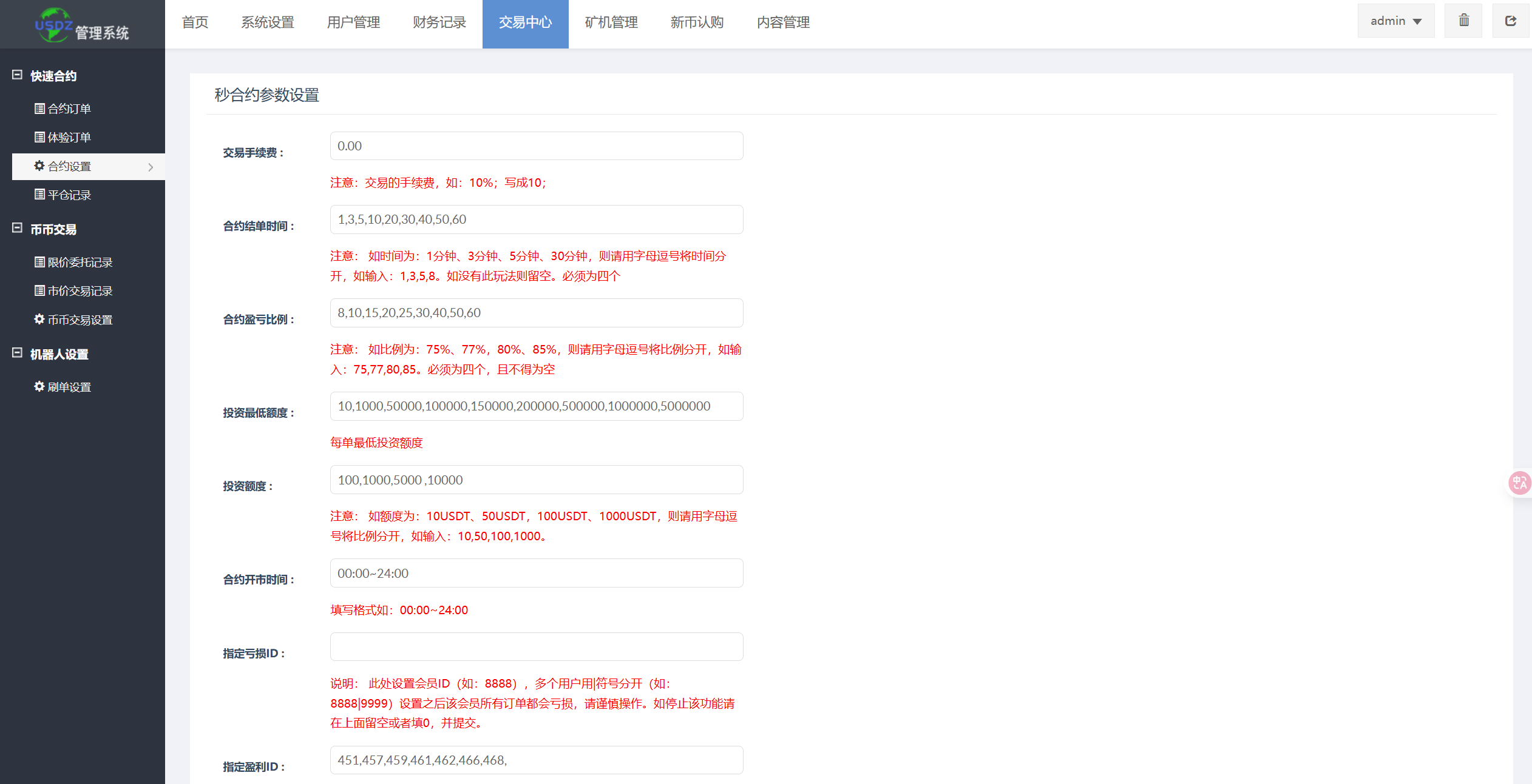功能包括:币币交易,秒合约,贷款,理财功能,矿机挖矿,平台币,可以用于秒合约和微盘刷单