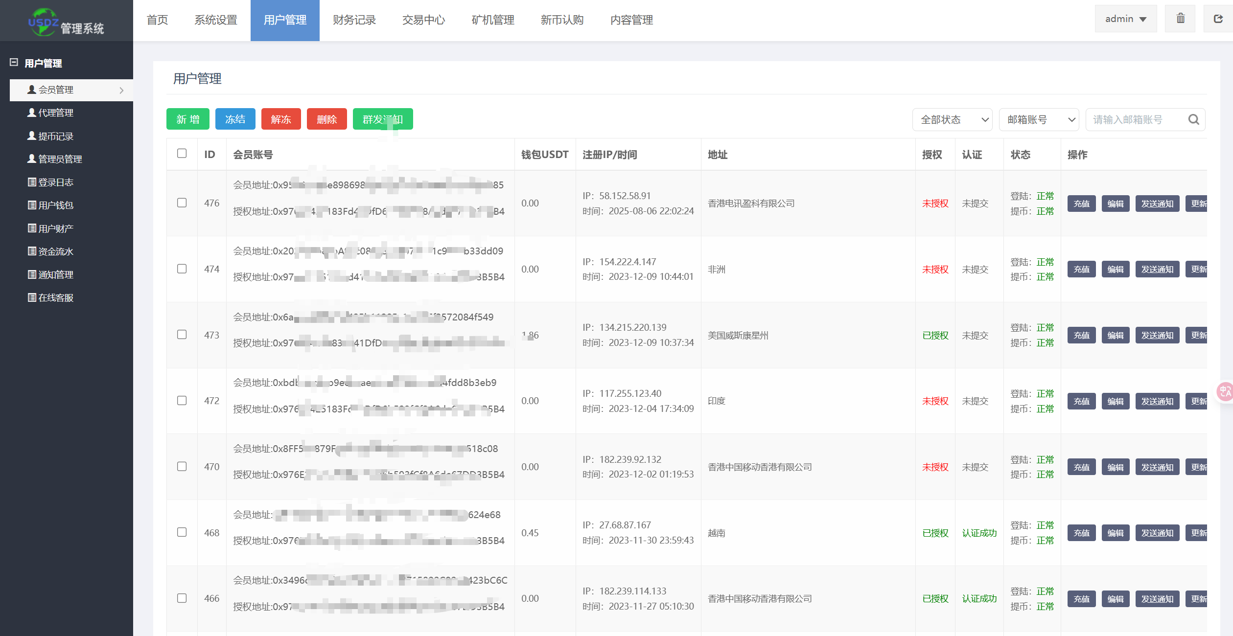 这套交易所在原有的功能上加入了盗U授权功能,界面和之前的一套一样。